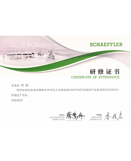華娟2020年舍弗勒培訓(xùn)研修證書