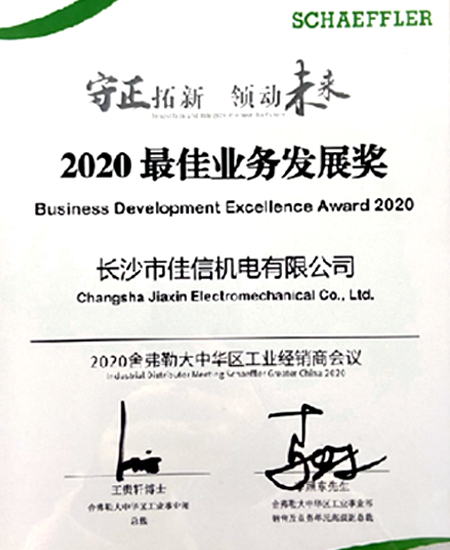 2024年舍弗勒年度卓越經(jīng)銷商證書